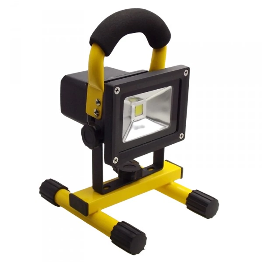 A hideg fehér 10W-os akkus LED reflektor nagyjából 100W-os hagyományos fényvetőnek a fényerejével egyezik meg. Kis energia fogyasztásának köszönhetően az akku sokáig bírja, illetve kicsi a súlya. Campingezés, építkezés, helyszíni szerelés és számtalan célra alkalmasak. Talpa minden irányban állítható és rögzíthető, bármilyen irányba fókuszálni tudjuk vele a fényt ahova kell. Talpáról egy mozdulattal levehető és kézben vihető. 3 fokozatú kapcsolójával három féle fényerőt ad. A fény erősségének függvényében egy töltéssel 6-4-2 órán keresztül képes üzemelni. Található rajta egy 5V USB kimenet is, mellyel tölthetünk például telefont. A LED élettartalma 50 ezer óra, ez tízszerese a hagyományos izzónak vagy halogén izzóénak. A LED reflektor hőleadása működés közben minimális, ezért nem melegszik illetve nincs hő formájában távozó energia veszteség. A LED reflektorokat ajánljuk minden olyan helyre, ahol eddig hagyományos reflektorokat használtak. A fénye valamivel fehérebb a halogén szálizzós reflektoroknál, ezért erősebbnek is hat illetve szebben verődik vissza fehér felületekről, a megvilágított felületen lévő színeket is élethűbben adja vissza a halogén reflektoroknál.