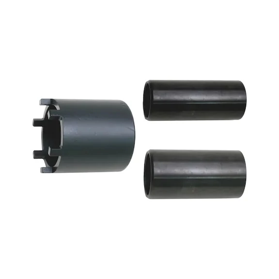 - 3 részes. Cserélhető vezetőhüvely az elülső és a hátsó tengelyen végzett le- és felszerelési munkákhoz.