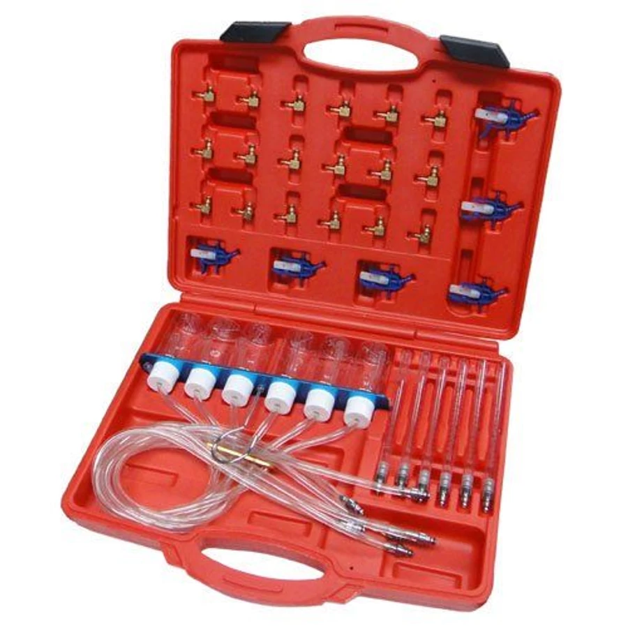 A korszerű common-rail dízel motorok injektorának (befecskendezőjének) tesztelésére szolgál. Járó üzemű dízel motornál méri a befecskendezőknél fellépő résolaj veszteséget, ebből az adatból következtethetünk a porlasztók mechanikai állapotára. A készlethez tartozó 6db darab mérőedény tartozik. Ezen mérőedények milliliter beosztású skálával vannak ellátva. A mérőedénybe jutó résolaj mennyisége akkor normális ha maximum 1-2 ml-t tesz ki kb 2.500 fordulat/perc motor fordulatszámon. Ennél nagyobb mennyiségű résolaj veszteség mindenképpen további injektor diagnosztikát tesz szükségessé. A készletben található adapterek segítségével univerzálisan bármilyen Európai, Japán és Amerikai common-rail dízel motor befecskendezőjéhez hozzácsatlakoztathatjuk a résolaj mérő diagnosztikai műszerünket. Kompatibilis Bosch, Siemens, Denso, Delphi befecskendezőkhöz.