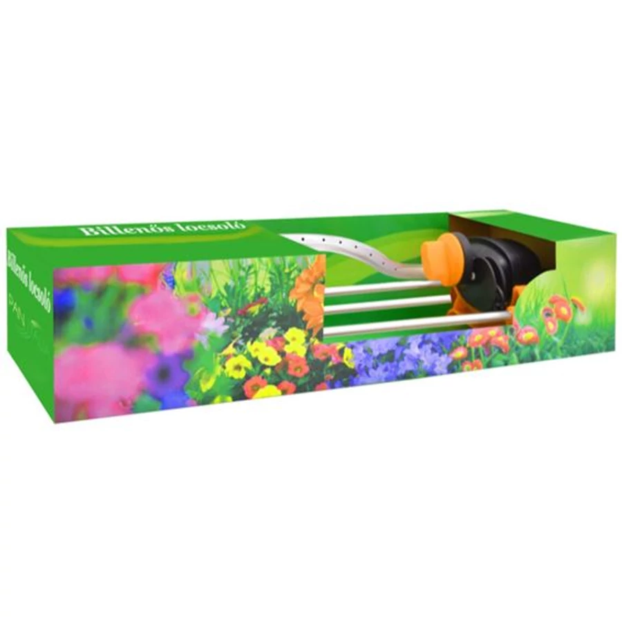 A billenési szöget a 2 forgókarral tudja szabályozni. Víznyomással lehet a távolságot beállítani. Az öntöző Uv álló műanyagból készült, minőségi termék.