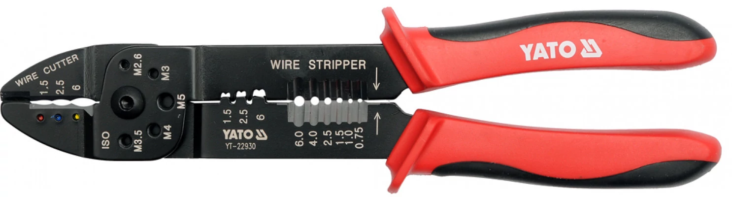 YT-22930 fogó vastagon edzett acélból , feketített felülettel, amely véd a korrózió ellen. A fogantyúk kétkomponensű műanyag kupakkal vannak rögzítve.