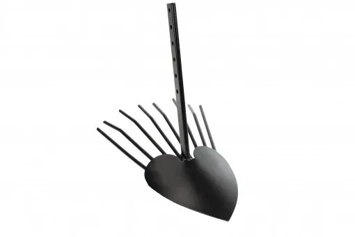 Ideális segítő a burgonya betakarításához. A speciális fogak forgatják ki a burgonyát a szántóföldből. Kiváló minőségű festett acélból készült.