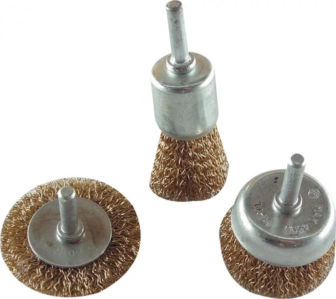 drótcsiszoló körkefe készlet (25-38-50-63-75mm, O6mm-es csap, hullámos acél szálak)
