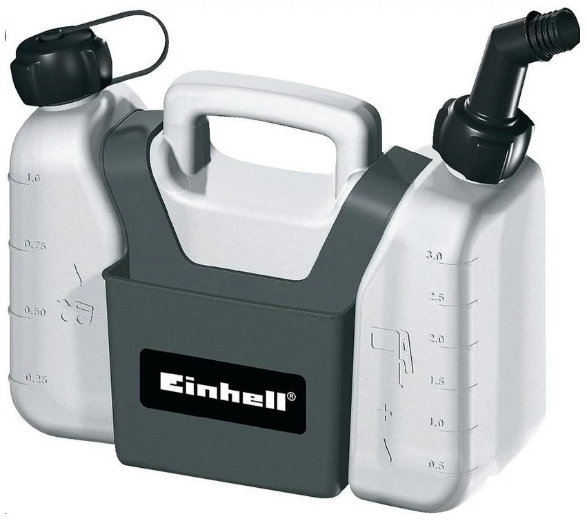 Az Einhell kombinált üzemanyag kanna tökéletes kiegészítő azoknak a felhasználóinknak, akik láncfűrésszel dolgoznak, hiszen ennek segítségével pillanatok alatt utántöltheti a láncolajat és az üzemanyagot. A kombinált üzemanyag kanna (1,25 literes olaj-, és 3 literes üzemanyagtartállyal) nélkülözhetetlen segítőtárs, ha benzines készülékeket kell megtankolnia. A kannán található egy praktikus szerszámbefogó is. A veszélyhelyzetek kialakulásának elkerülése érdekében a kannát gyerekzárral ellátott menetes kupakokkal szállítjuk. A kiöntő segít abban, hogy egyszerűen megtankolhassa az adott készüléket, és egyben óvja a környezetet is, hiszen így nem folyhat mellé az üzemanyag. A kanna kiváló minőségű, ütésálló műanyagból készült, amely komoly igénybevétel esetén is megállja a helyét.