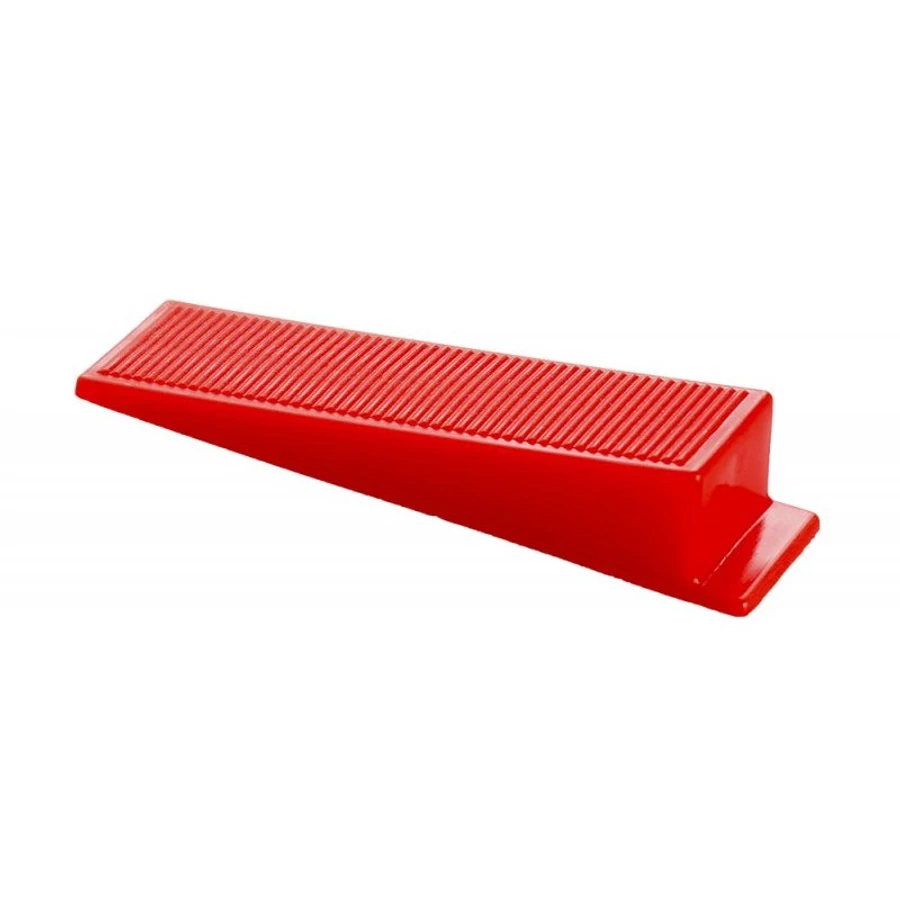 - Ékek fogóval történő felhelyezése kiegyenlíti a csempéket, száradás után a kapocs felső részét az ékkel eltávolítjuk - fehér gumibottal vagy rúgással