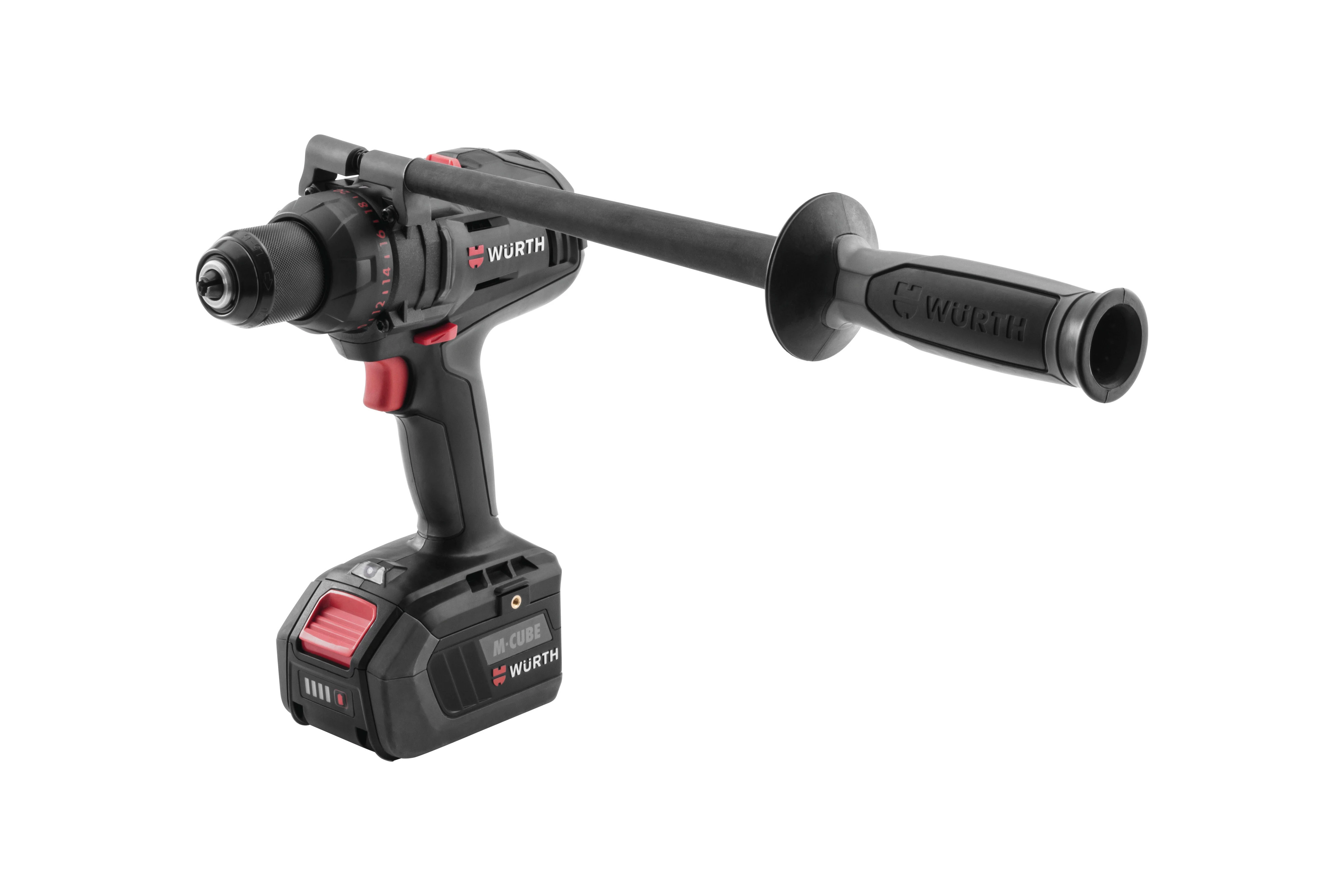 Robusztus fúrófej kefe nélküli motorral és állítható tengelykapcsolóval. Würth SYSKO hordtáskában szállítva.