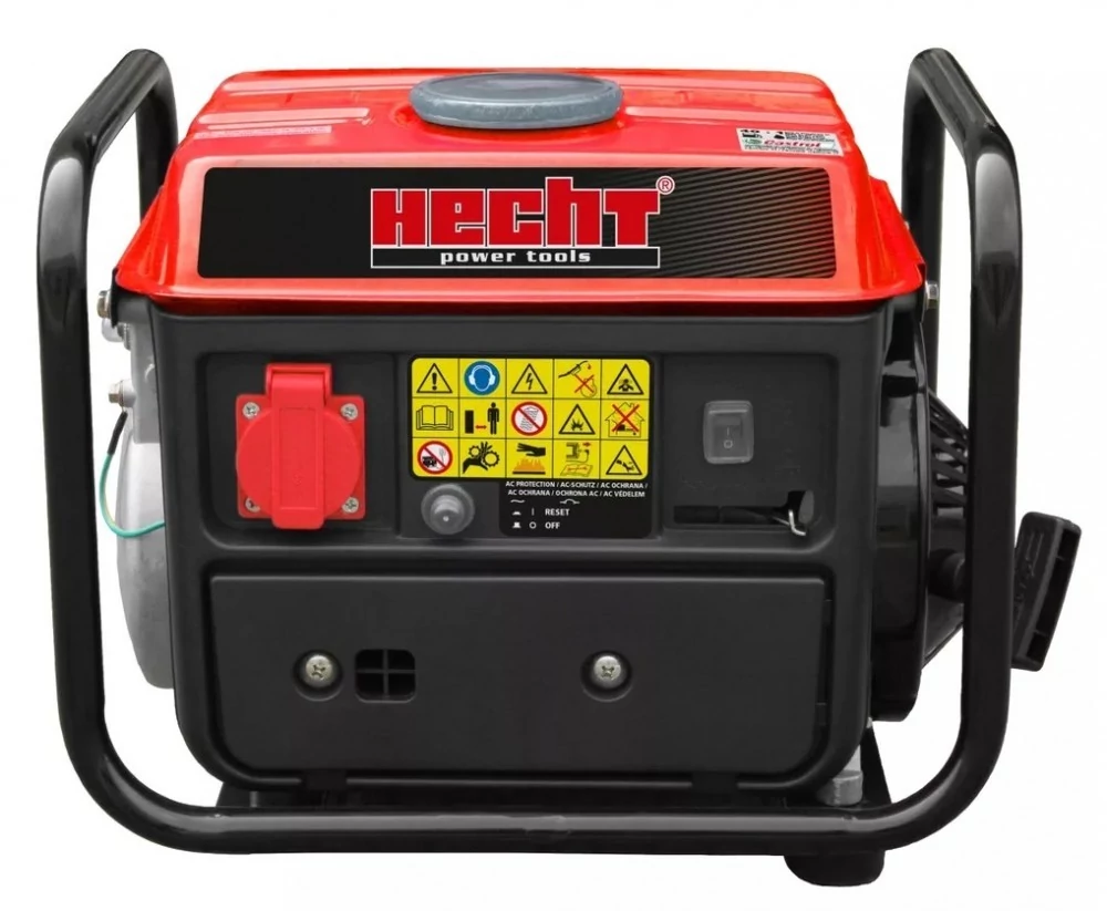 A HECHT GG 950 kicsi, könnyű és stabil feszültséggenerátor, ideális ár-érték arány mellett. A hajtást kétütemű, 63 cm3 kapacitású és 2 LE teljesítményű HECHT motor hajtja. A generátor szabványos 230 V / 50 Hz-es csatlakozóaljzattal ellátott elektromos panellel van felszerelve, amely lehetővé teszi a 650 W maximális folyamatos teljesítményű készülékek csatlakoztatását, rövid időre 720 W-ig terhelhető, például egyes készülékek indítási áramával. A generátor oldalán van egy második, 12 V-os feszültségű aljzat is, amelyet 60 W-ig terjedő teljesítményű készülékekkel lehet betölteni, ugyanakkor bizonyos típusú akkumulátorok újratöltésére is használható. Ugyanakkor nem rendelkezik töltésvezérléssel, ezért folyamatosan ellenőrizni kell az akkumulátor töltöttségi állapotát, és időben le kell választani. Mindkét aljzatot megszakító védi a túlterheléstől. A generátor gumi lábakkal van ellátva, amelyek csökkentik a rezgéseket, valamint a fogantyúval ellátott kerettel a könnyű hordozás érdekében.
