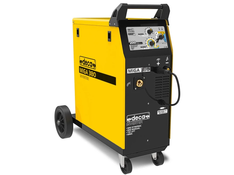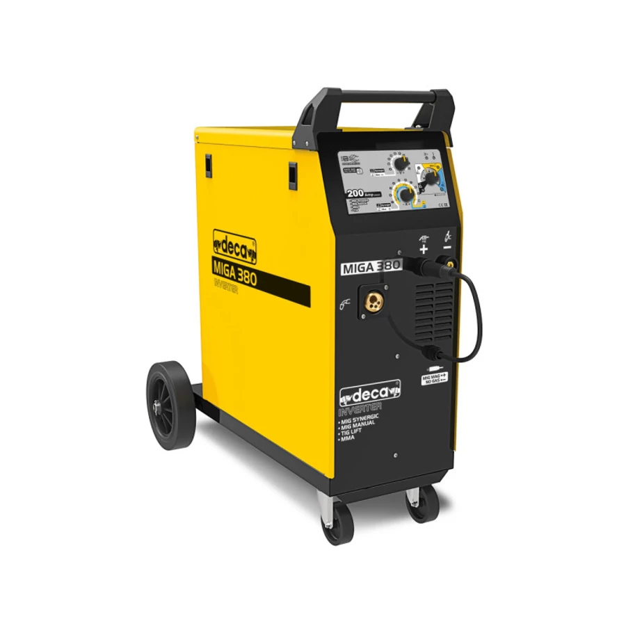 - szinergikus MIG/MAG (fogyóelektródás védőgázas ívhegesztés): A hegesztő inverter automatikusan az optimális beállítást alkalmazza a megadott hegesztési paramétereknek megfelelően. Alapvető hegesztési folyamatokhoz, acélhoz, rozsdamentes acélhoz, alumíniumhoz és keményforrasztáshoz ajánlott, réz-szilícium és réz-alumínium huzalokkal.