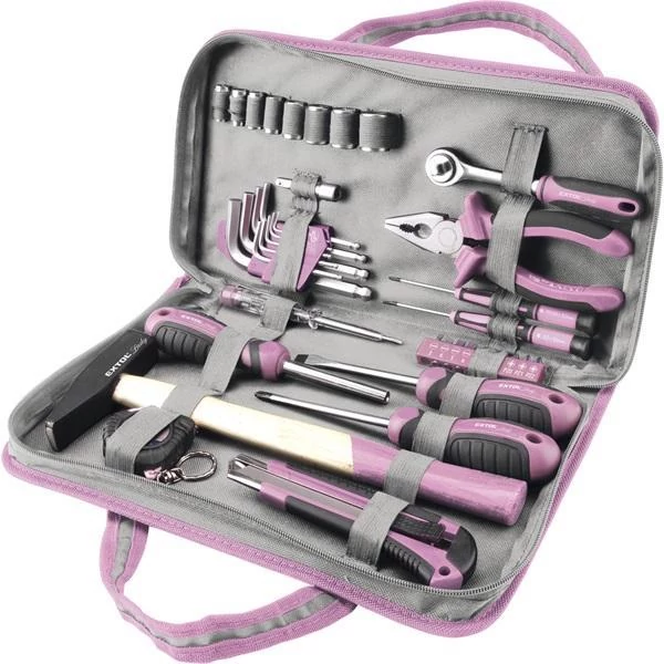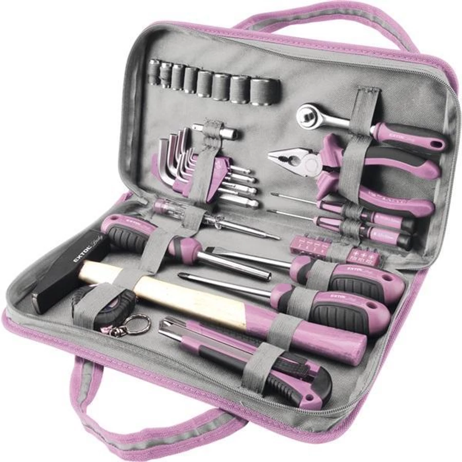 Praktikus trendi pink szerszámkészlet hölgyeknek, mindenféle kisebb nagyobb javításhoz, bútor összeszereléshez otthoni felhasználásra...