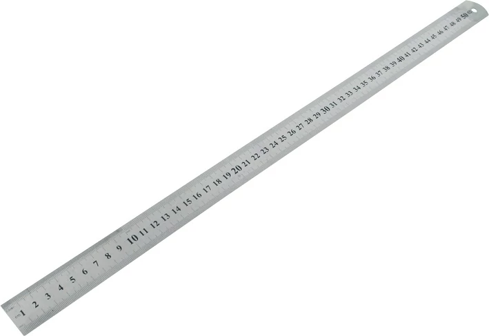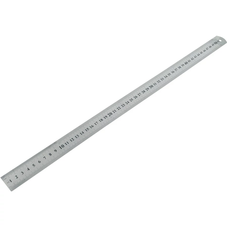 50 cm hosszú rozsdamentes acél vonalzó mm-es osztással. Mindkét oldalán skálázott.