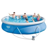 A puhafalú medence szett vízforgatót is tartalmaz, amely keringeti a medence vízét, közben összegyűjti a finom szennyeződőseket, így segít tisztán tartani a medence vízét. A víz szűrése Bestway Szűrőpatronon keresztül történik, mely a csomag szintén tartalmaz.