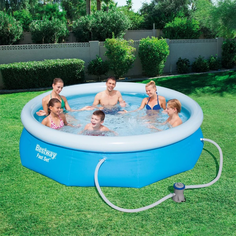 Könnyen, gyorsan telepíthető, szakértelmet nem igényel. A medencetest sík talajra állítva, karimáját felfújva azonnal megkezdhető a víz feltöltése. A szűrőberendezést csatlakoztatva készen áll a használatra.
