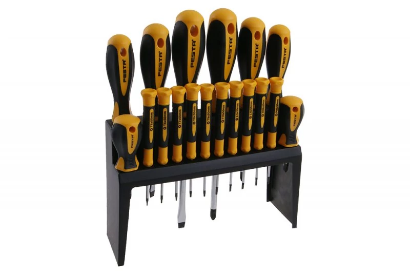 - Minőségi csavarhúzó és mini csavarhúzó készlet praktikus állványban, könnyű és áttekinthető tárolás