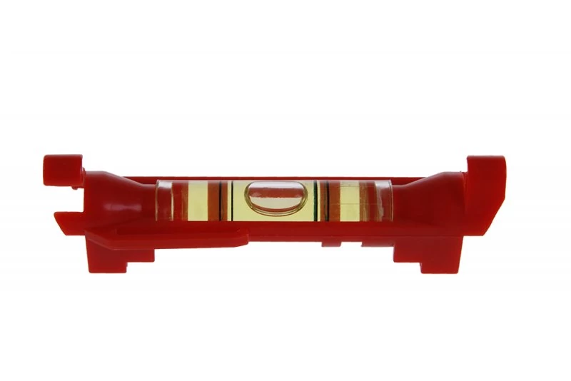 - Kis műanyag vízmérték, két horoggal, madzagra akasztható, extra könnyű kivitel a megereszkedés megakadályozására.