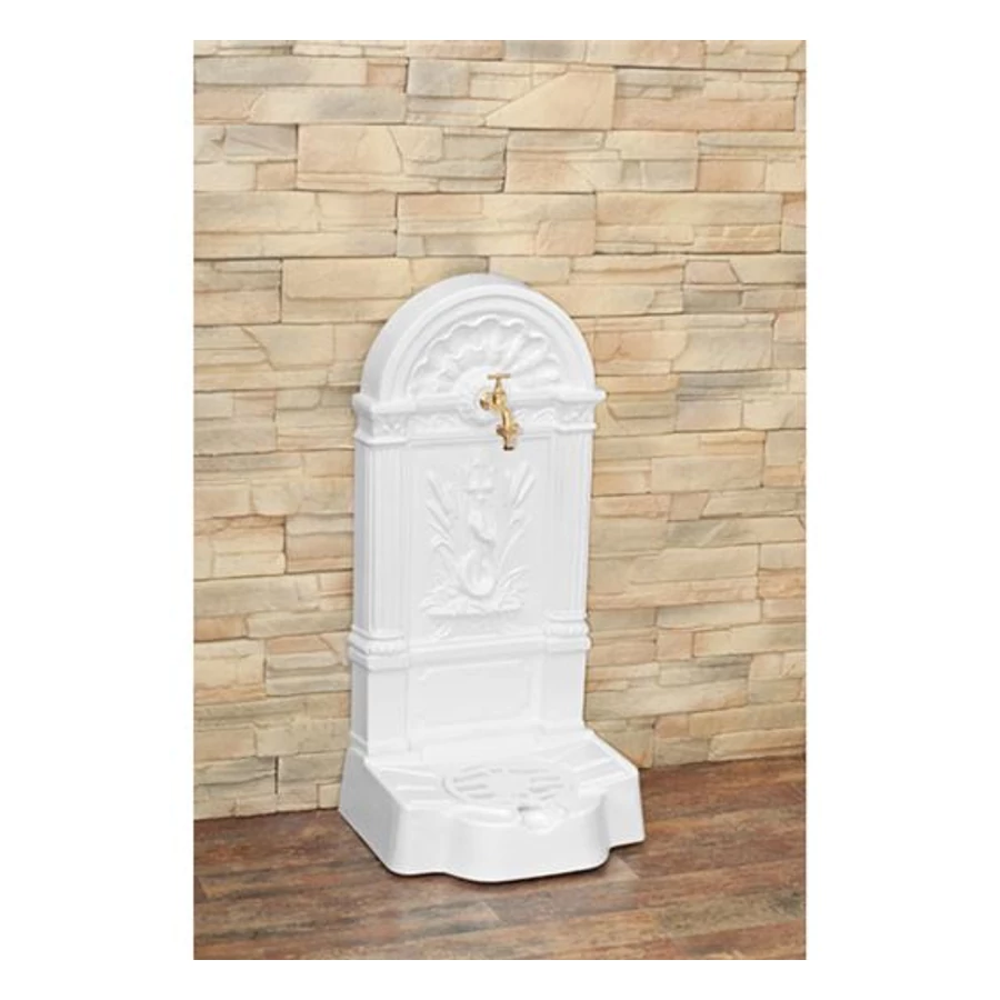 A Firenze kerti alumínium öntvény álló falikút, kifinomult és praktikus kerti kiegészítő. Az alumínium öntvény anyagnak köszönhetően a kút 100%-ban rozsdamentes, így hosszú élettartamú és ellenálló mindenféle időjárási körülménynek. Az fehér színű falikút elegánsan illeszkedik kültéri és beltéri környezetbe egyaránt, emelve a kert vagy otthon esztétikai értékét. Az alumínium öntvénykutak különleges technológiával, kokilla öntéssel készülnek. A megmunkálás és finomítás után érik el végleges kinézetüket és felületüket. A külső bevonat UV-álló és kültéri porlakkal készül, elektrosztatikus porfestéssel hordanak fel , így garantálva a kút hosszú élettartamát és ellenálló képességét a változó időjárási viszonyoknak.