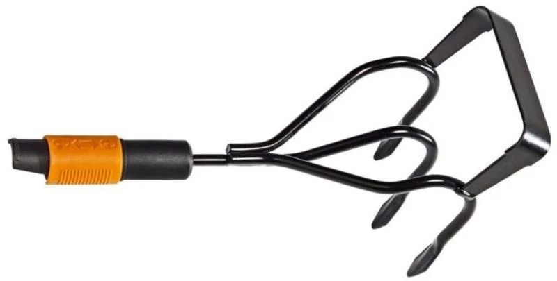 - A Fiskars QuikFit™ mechanizmus segítségével megerőltetés nélkül cserélhető a gereblye, kapa, gyomláló, fűrész… stb. fej
