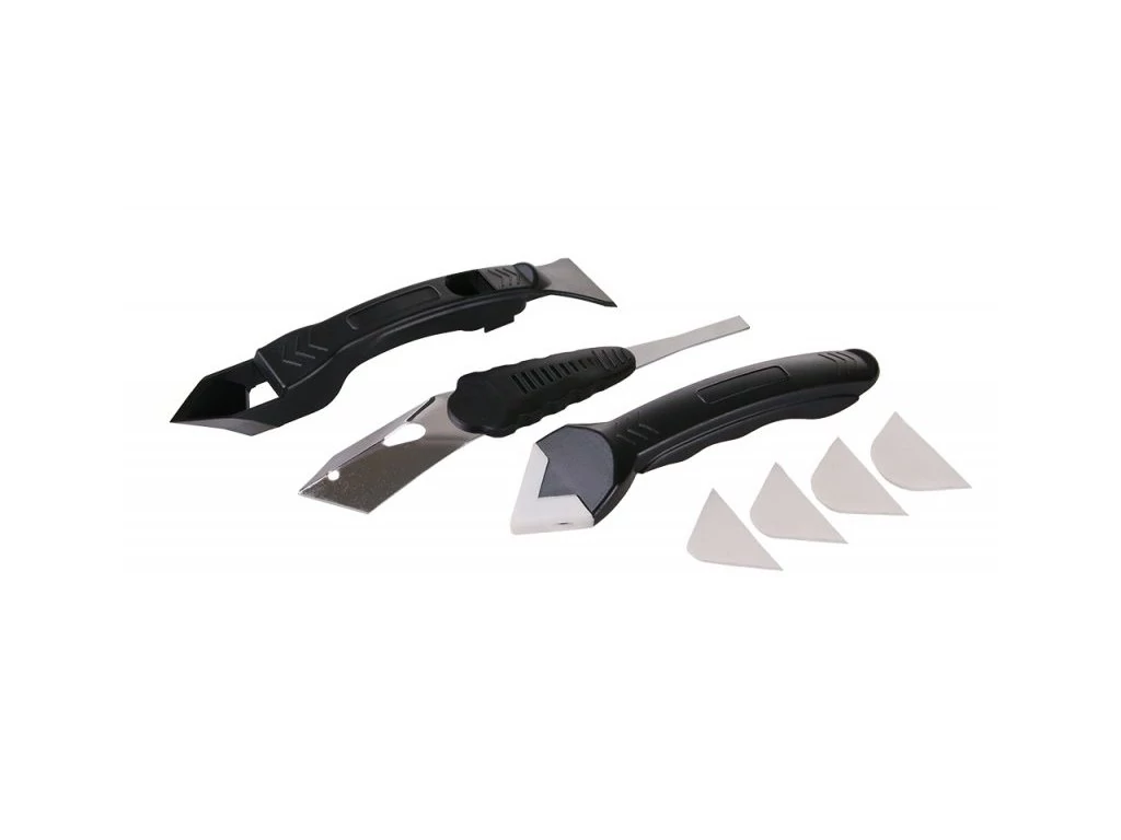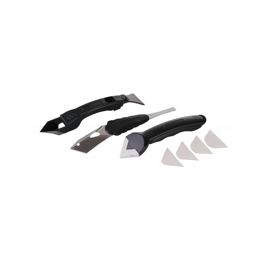 - A 3 részes készlet segítségével a régi fuga eltávolítható, illetve ideális minden befejező munkához, pl.: szilikon és akril illesztések felhordásához.
