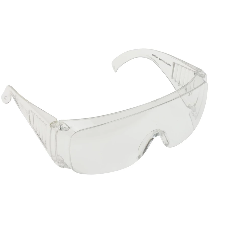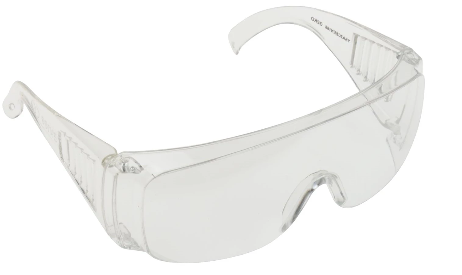 Biztonsági szemüveg tartós polikarbonátból. Szem védelme a repülõ részecskék, tárgyak, munkahelyi veszélyek ellen.