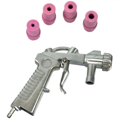 Homokszóró pisztoly 4 kerámia fúvókával. Használt, többek között fém peremek tisztítására, rozsda eltávolítására, festék és egyéb törmelék különböző felületről való tisztításában. Különféle csiszolóanyagokkal használható, mint például homok, korund, mikroüveg gyöngyök, acél és vas.
