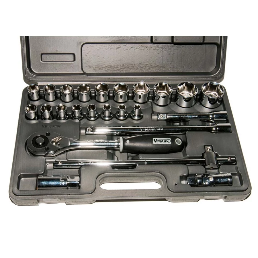 18 db 1/2" 6-lapos crowafej (méret: 8, 9, 10, 11, 12, 13, 14, 15, 16, 17, 18, 19, 21, 22, 24, 27, 30, 32 mm)
