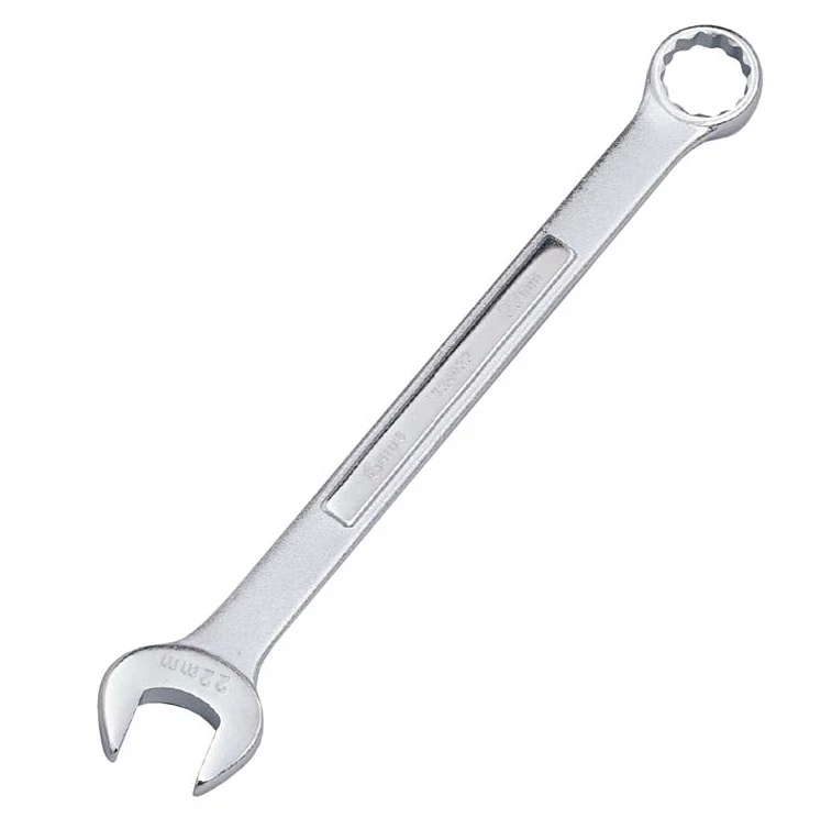 Metrikus csillag-villás kulcs, matt polírozású. Villás végén horizontálisan, csillag végén vertikálisan 15 fokkal hajlított. Méret: 10 mm