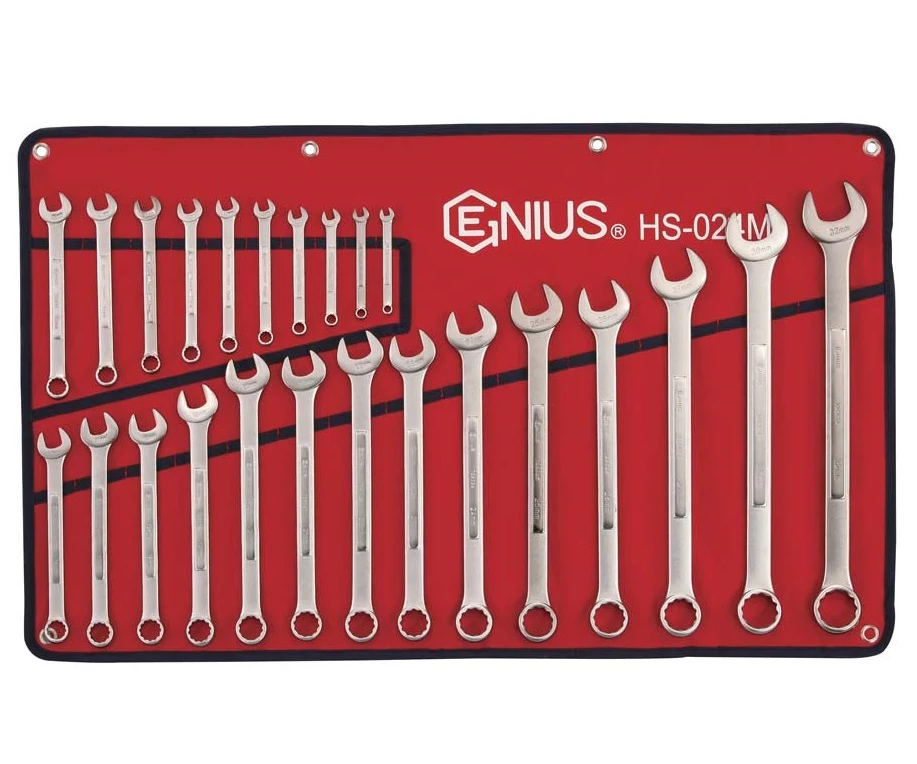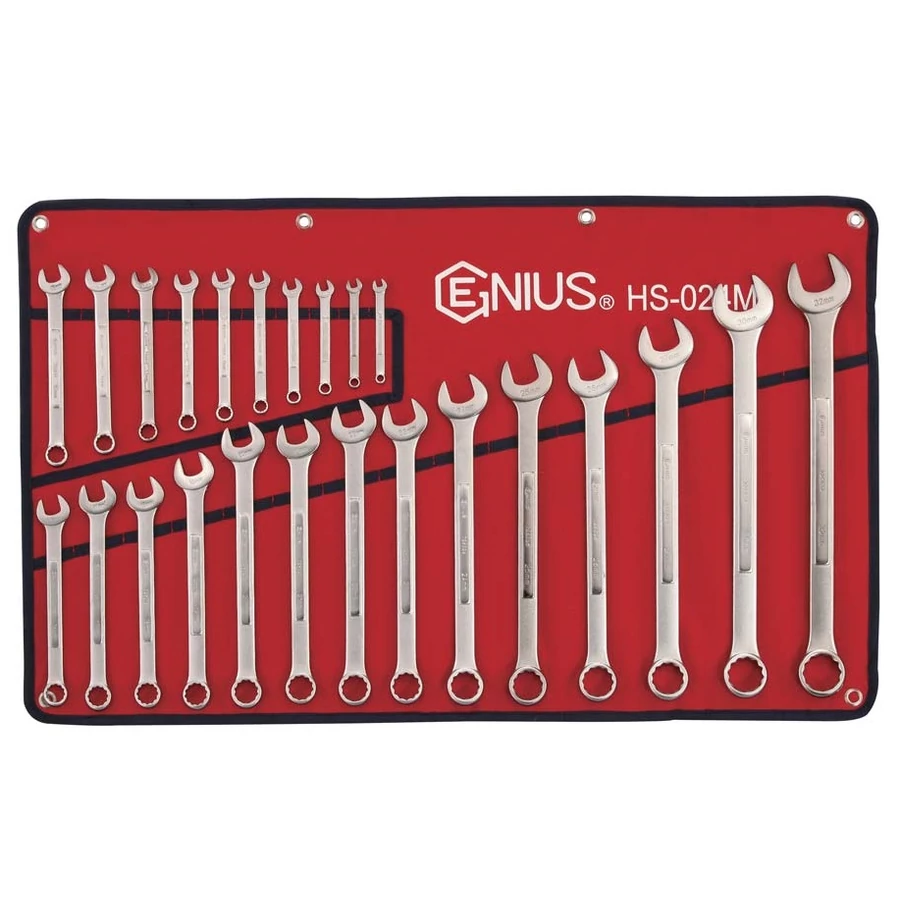 24 darab metrikus csillag-villás kulcs (matt fényezésű); méret: 6, 7, 8, 9, 10, 11, 12, 13, 14, 15, 16, 17, 18, 19, 20, 21, 22, 23, 24, 25, 26, 27, 30, 32 mm