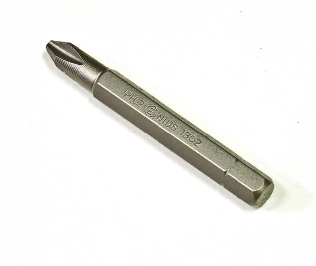 Csillagfejű (Ph) bit csavarhúzó (behajtó hegy), melynek fejmérete: #2 (≈6mm); Befogása: 1/4".