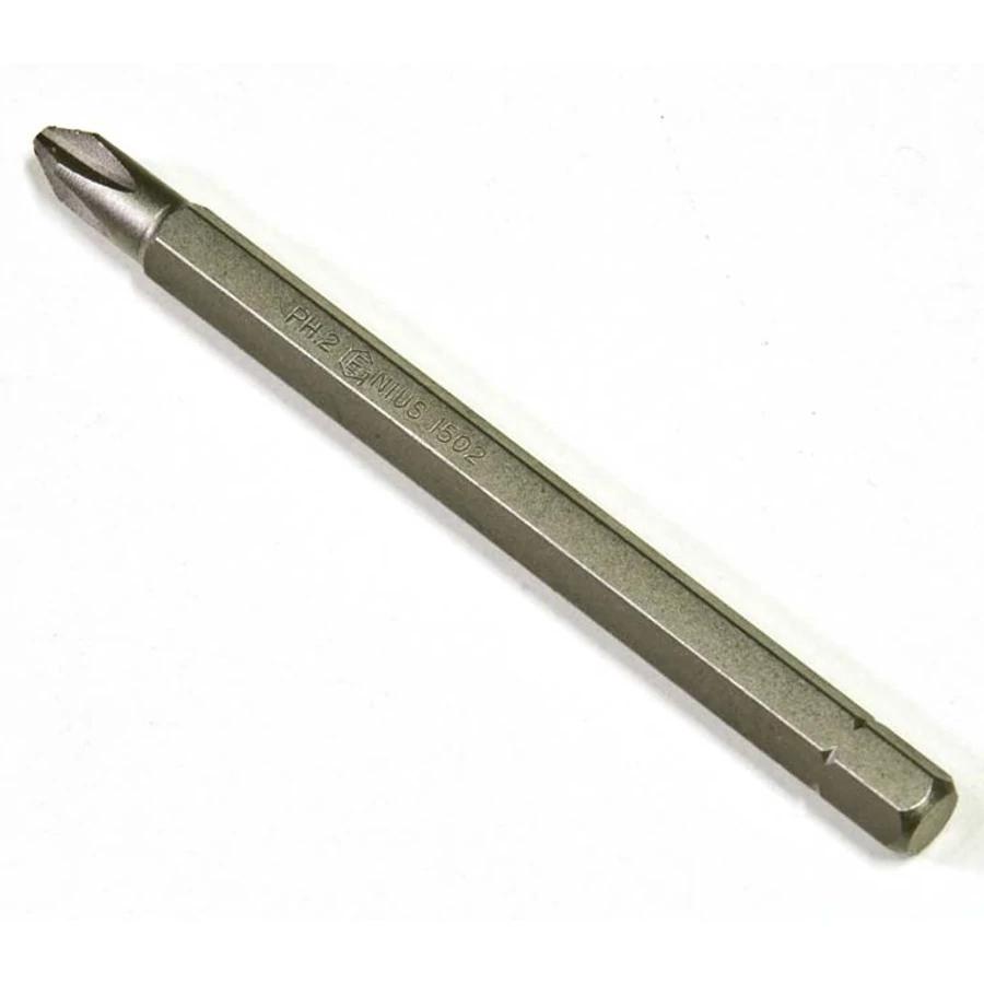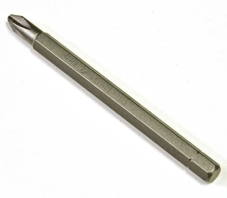 Csillagfejű (Ph) bit csavarhúzó (behajtó hegy), melynek fejmérete: #2 (≈6mm); Befogása: 1/4".