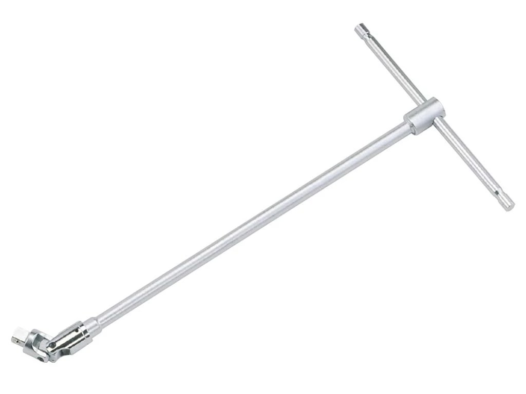 T-alakú crowa hajtókar, hosszú csúsztatható szárral. A szár vége univerzális csuklós crowafejbe végződik, amely 90°-os dőlést biztosít minden irányba. Fej: 3/8"