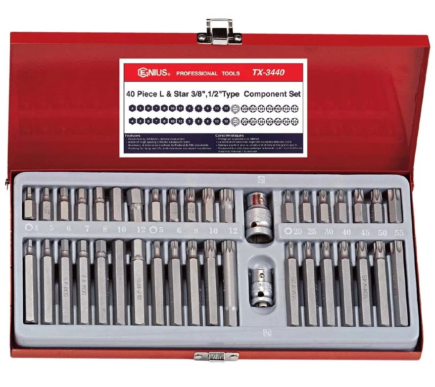 7+7 db külső torx bit (méret: T-20, 25, 30, 40, 45, 50, 55)