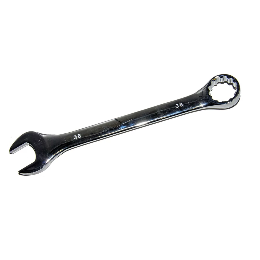 Csillag-villáskulcs. Metrikus, egyenes-szárú, mindkét vége 15°-kal hajlított. Villás vége horizontálisan, csillag vége vertikálisan. Markolata sima felületű. Teljes felülete fényesre polírozott.