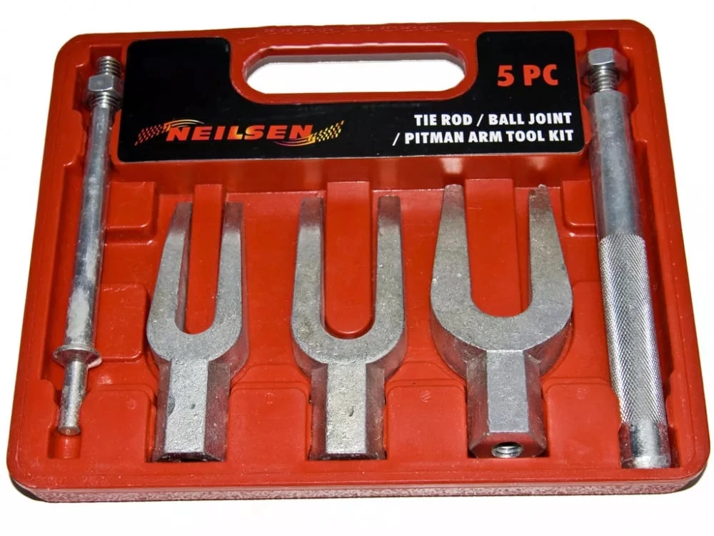 A gömbfej kiütővilla készlet egy speciális, 5 darabos készlet, amelyet gömbfejek, kerékagyak és egyéb felfüggesztési alkatrészek eltávolítására használnak, főként járműjavítási és szerelési munkák során. Ezek az eszközök lehetővé teszik a csapágyak és felfüggesztési elemek szakszerű szétválasztását anélkül, hogy sérülnének.