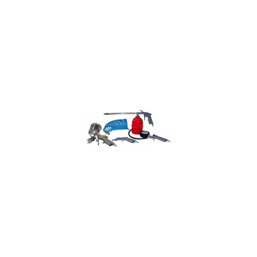 - Tartalma egy festékszóró pisztoly, 5m spiráltömlő, olajzópisztoly, kerékfujató és egy rövidhegyű lefujató.