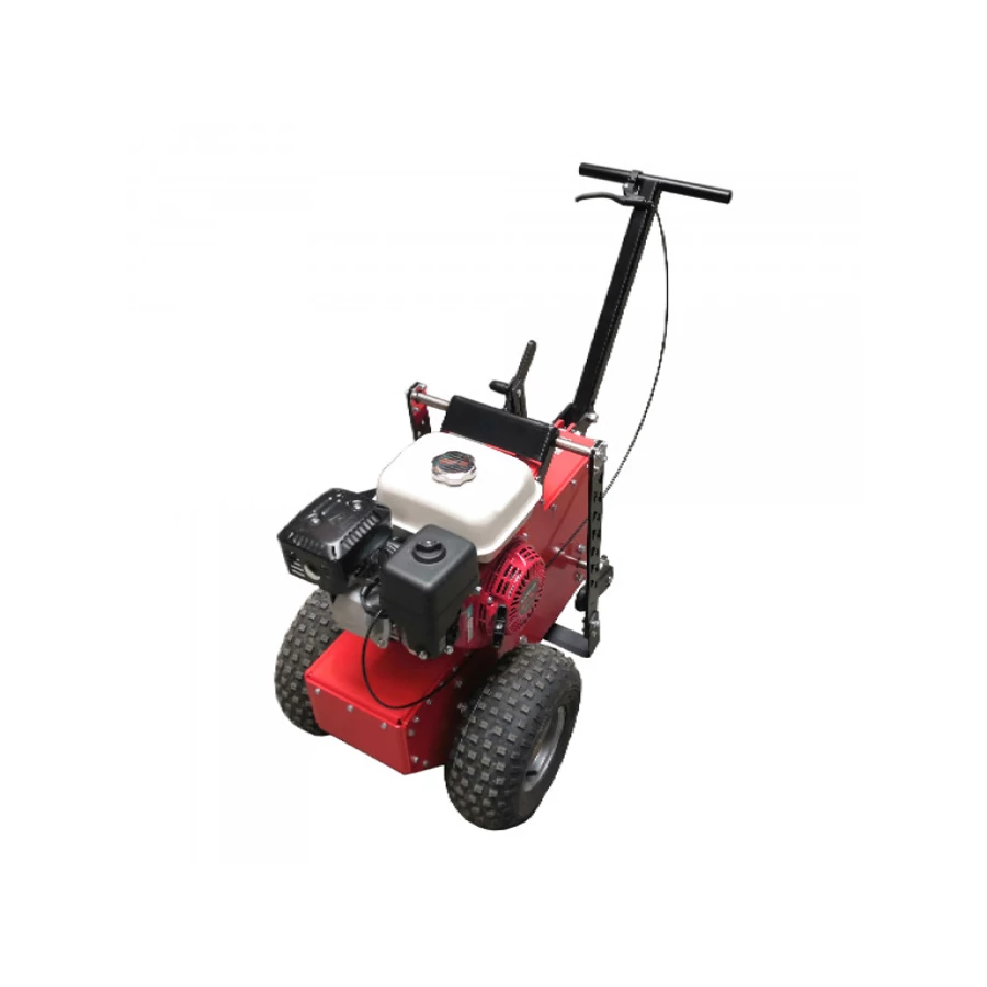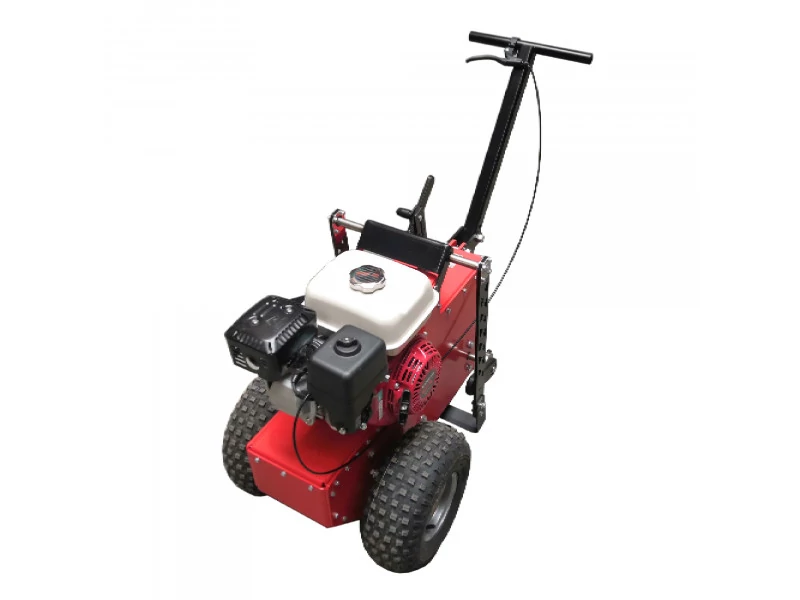 Újrafüvesítésnél a felső elhasznált, elgyomosodott fűréteget vágjuk/hántoljuk fel kb. 2-3 cm vastagságban, majd ez a kivágott földcsík eltávolítható a területről. A motoros gép gyorsan rezgő vágókése az előbbi munkálatot könnyíti meg és teszi szakszerűvé. Tévhit, hogy a régi gyepet bele szabad rotálni az altalajba, mert a végeredmény csalódás lesz. Saját kezűleg történő füvesítéskor ajánlott bérelni egy gyepfelszedő gépet, hiszen a laikus ember is könnyen boldogul vele, ezért egyre nagyobb felhasználói körben terjed el, legyen szó a ház kertjéről vagy egy focipályáról. Kevesebb lesz a zöldhulladék, amiről gondoskodni kell, kevesebb talajutánpótlás szükséges, amivel újból jelentős összegeket takaríthatunk meg, ha pedig gyepszőnyeg lefektetése az igény, a talajpótlás akár el is hagyható. A gyepfelszedő gép segítségével a meglévő gyepet vagy gyepszőnyeget károsodás nélkül fel tudjuk szedni, így az visszahelyezhető kertmódosításkor. A gép profi kategóriás, HONDA GX200 típusú, 6,5 LE-s ipari, négyütemű benzinmotorral van szerelve. 40 cm széles, acél vágókés végzi a fű felszedését (szíjhajtású), 0 - 4,5 cm között beállítható mélységben, amelyet egy gyorskarral hamar rögzíthetünk. A vágóél mindig határozottan belehatol a földbe, a gépkezelő segítsége vagy bármilyen beavatkozása nélkül, az erős motorhajtás és a vágógép öntömege miatt. 0,5 m/s munkatempóval rendelkezik, ami azt jelenti, hogy óránként kb. 700 m2-nyi területen tudunk áthaladni és a gyepet felszedni. Önjáró szerkezetű, a traktorkerekek hajtottak (röpsúlyos tengelykapcsolós hajtómű), a markolaton lévő gázkar meghúzásával indul is és halad magától a gyepfelszedő (az önjáró funkció kikapcsolható).Súlyelosztása úgy lett kialakítva, hogy a tapadás a lehető legnagyobb legyen, sokféle tereppel megbirkózzon, de a manőverezhetősége megmaradjon. A kezelőkar behajtható, markolata gumírozott.