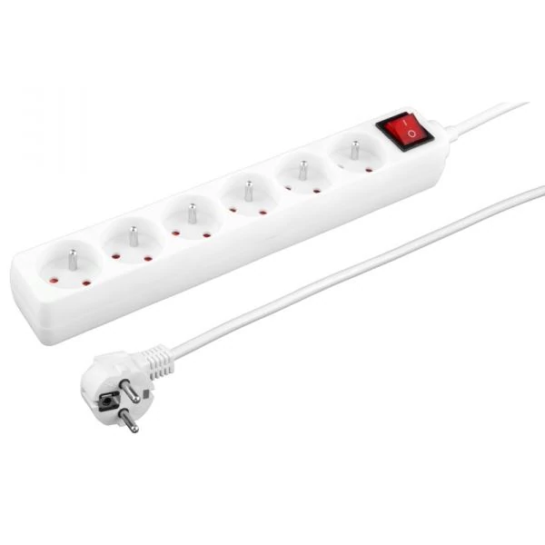 6-os, 2 pólusú kapcsolóval, 3m, H05VV-F 3G1,0mm, fehér, 10A, 250V, 60HZ, IP20