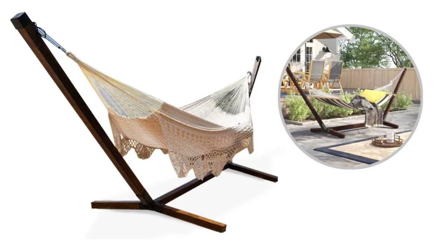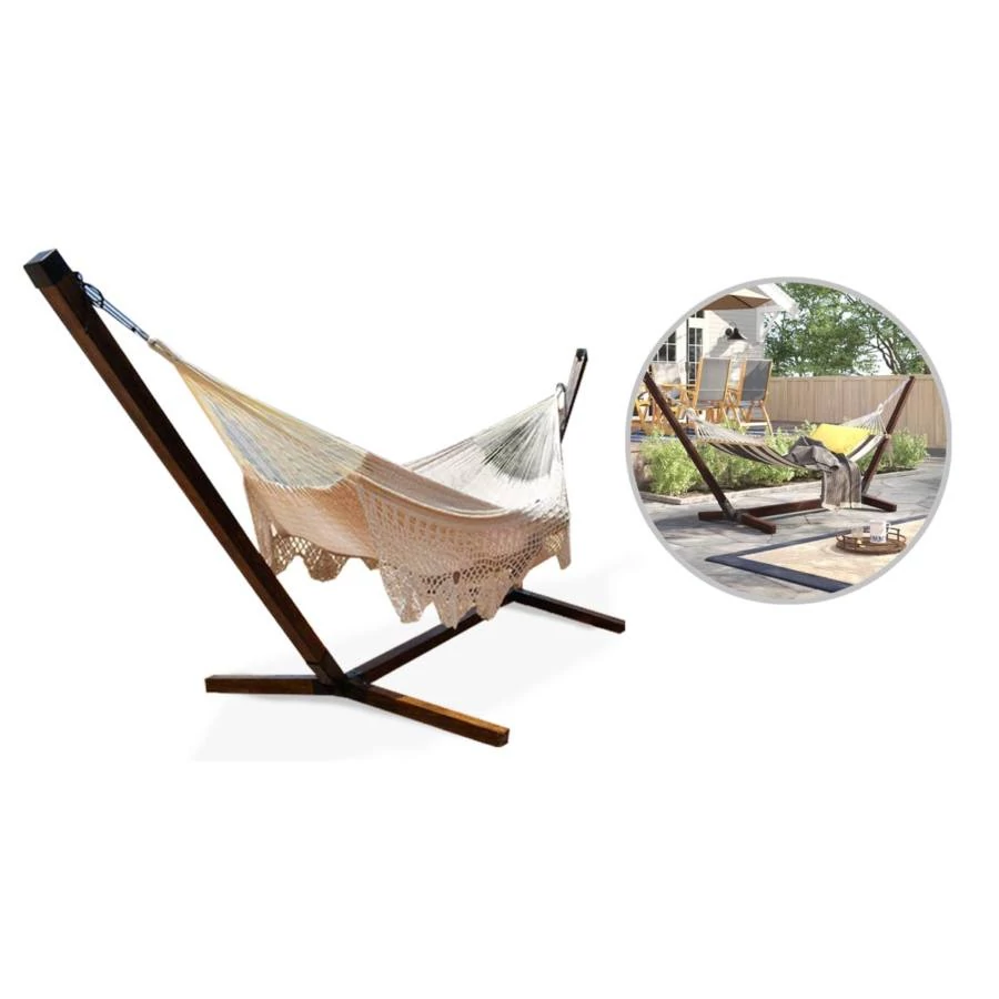 Pihenj otthon a kertben, a szabadban vagy bárhol, ahol csak tetszik. A tartóállványt szinte bárhol összeszerelheted. Miután ez megvan, csak ráakasztod a függőágyad és már lazíthatsz is. Most már nem feltétel a kert, akár egy nagyobb szobában, vagy teraszon is felállíthatod. Fából készült így bármilyen környezetben jól mutat. A csomagban minden szükséges csavart és tartozékot megtalálsz, így összeszerelése nagyon egyszerű. Az állvány 2 végének távolsága 2 méretre állítható. A csomagban található kampókhoz könnyedén rögzítheted majd a függőágyat.