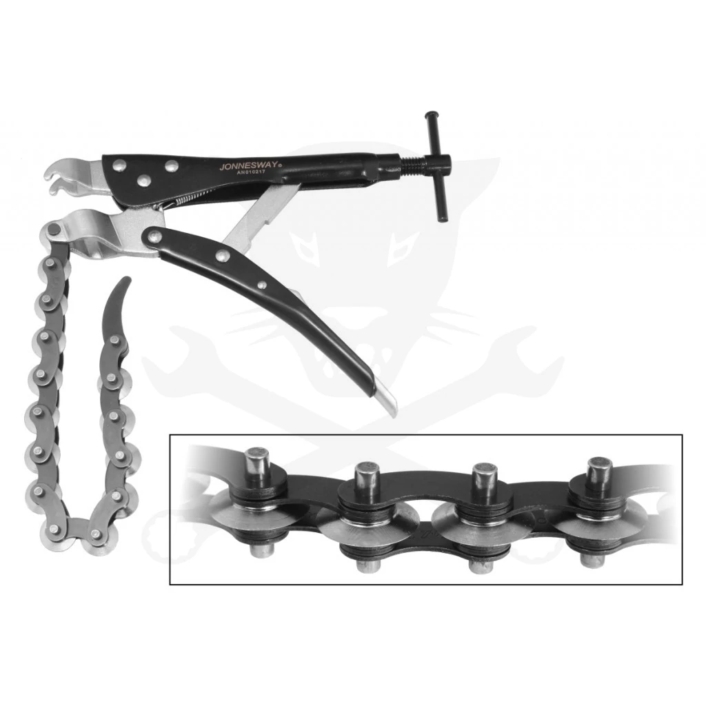 - Erősített, láncos csővágó önzáró fogóra építve.