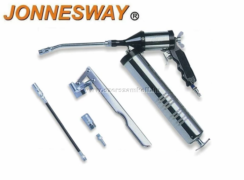 - 1db JAT-360 tipusú pneumatikus zsírzó 1db Gyorscsatlakozó 1db Tömlőfitting 1db Hajlított fém kifolyócső 1db Kézi zsírzó készlet