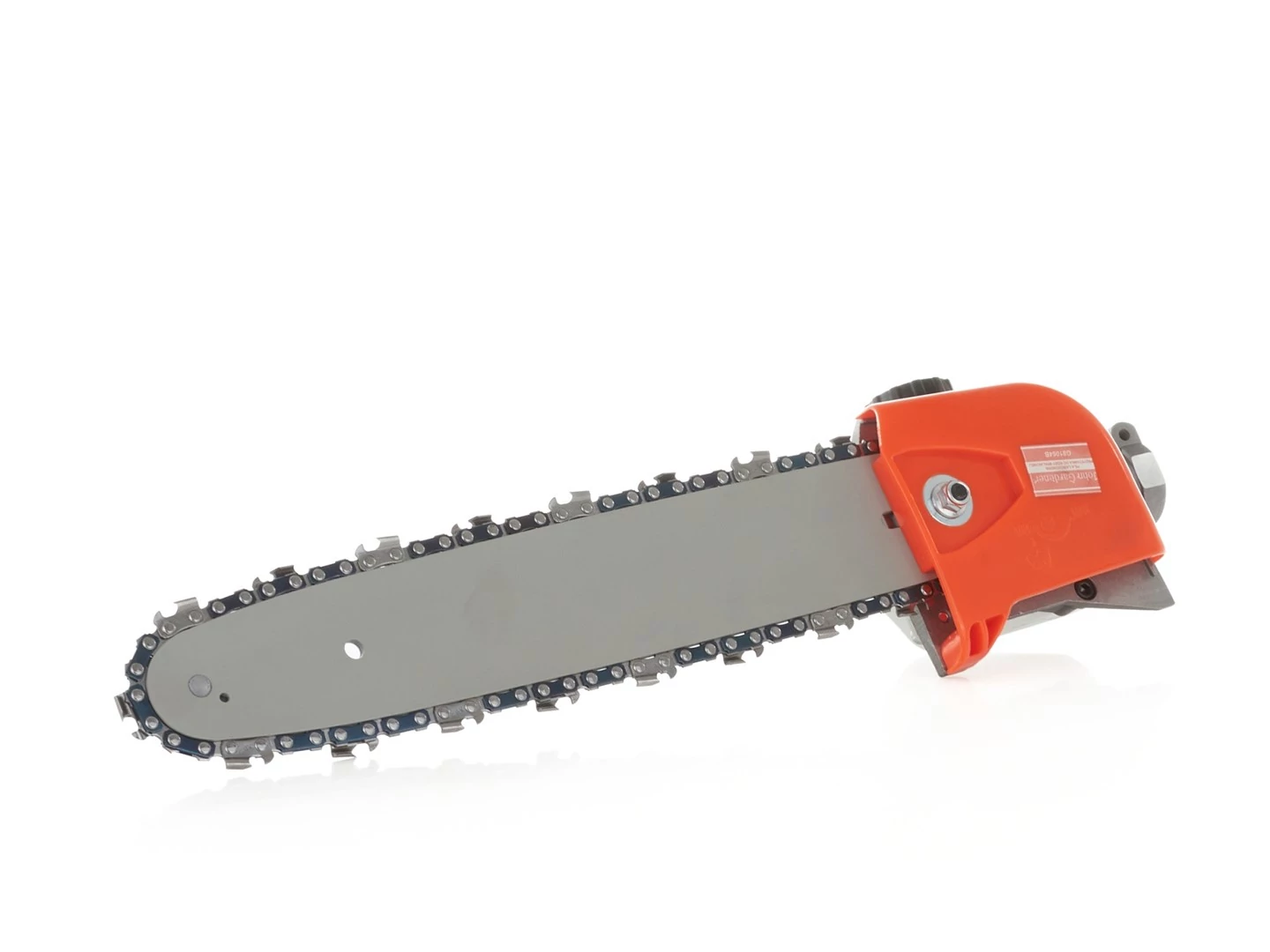 A láncfűrész adapter a benzinmotoros fűkaszához lehetővé teszi, hogy könnyen és gyorsan átalakítsa a benzinmotoros szegélynyírót egy magassági láncfűrésszé. Az eszköz kiválóan alkalmas ágak és sövények nehezen elérhető helyeken történő vágására. Az adapter lánckenési rendszerrel van felszerelve, ami garantálja a termék megbízhatóságát.