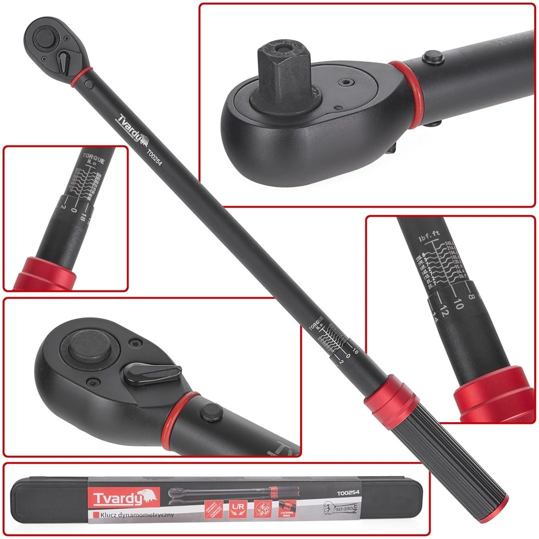 A Tvardy 1/2" -es nyomatékkulcs egy professzionális szerszám, amely lehetővé teszi a csavarok és anyák precíz meghúzását pontosan meghatározott erővel . Az 50-330 Nm (36,9-243,5 lbf.ft) meghúzási erő beállítási tartományának köszönhetően ideális Olyan alkalmazásokhoz, ahol a pontosságra van szükség .