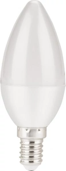 LED-es villanykörte "gyertya izzó" 5W, 410 lumen (40W hagyomány.), E14 foglalat, 3000K-Meleg Fehér színű, A+ energ.oszt. Fényerőszabályozás nem lehetséges. IP20 védelem.