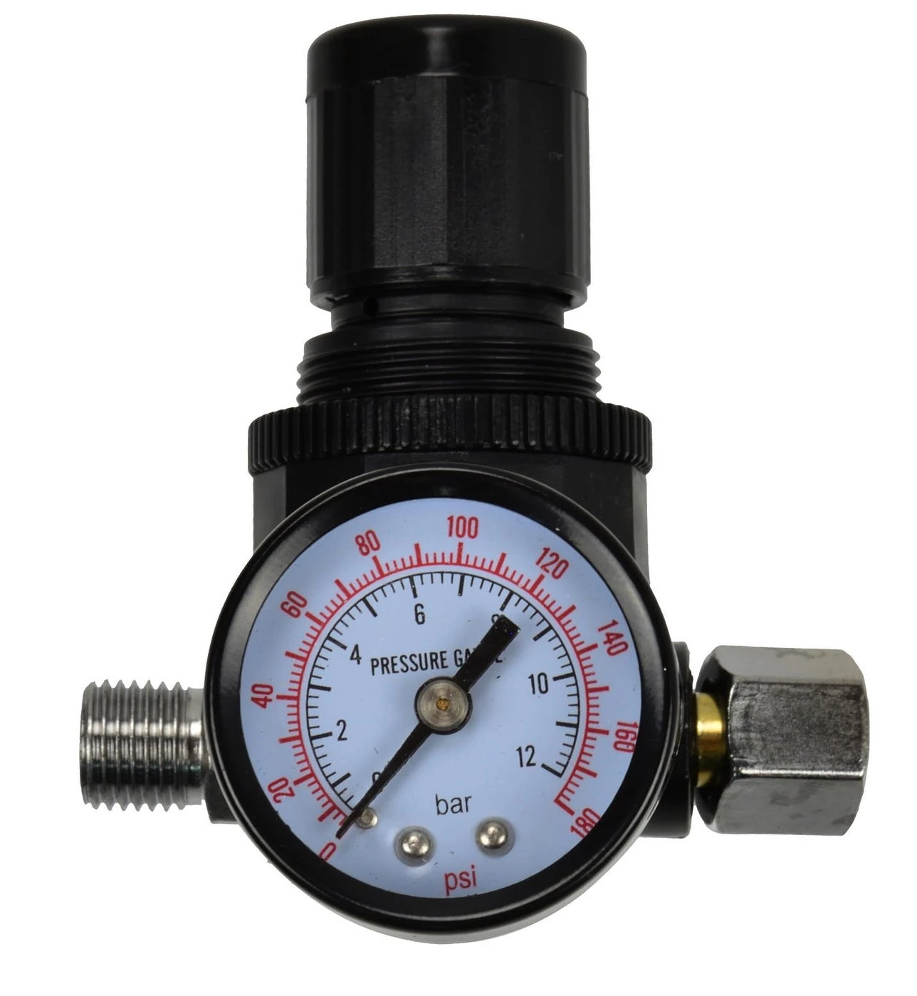 Csökkenti a nyomást és fenntartja az állandó üzemi nyomást a pneumatikus rendszerben. A reteszelő beállító gomb lehetővé teszi a kívánt kimeneti nyomás pontos beállítását. A szabályozó garantálja az állandó nyomást igénylő pneumatikus szerszámok hatékony működését.