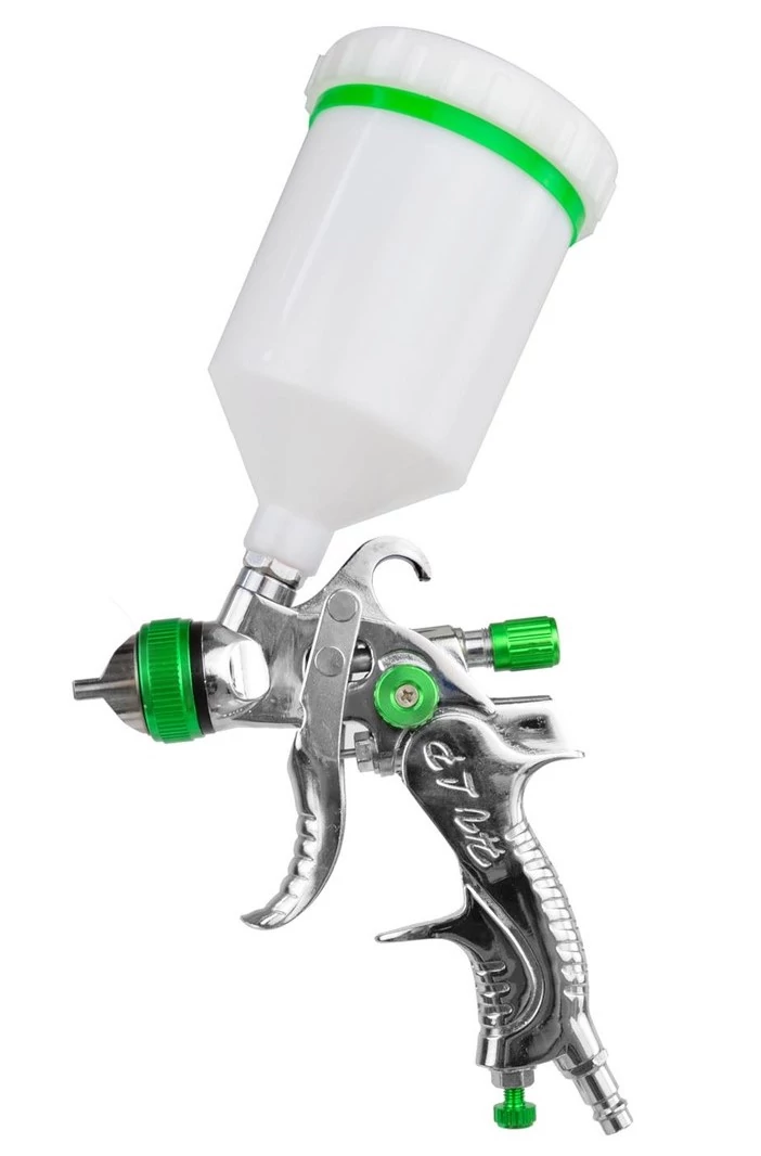 Professzionális Dragon HVLP GEKO alacsony nyomású festékpisztoly . A legjobb minőségű anyagokból készült. A fegyvert sűrített levegő hajtja . A kompresszor levegője eléri a festéktartályt és a pisztoly fúvókáját. Az így létrejövő nyomás „kinyomja” a folyadékot a tartályból, és a kiszórt festékszemcsék a fúvókán keresztül a festett felületre kerülnek.