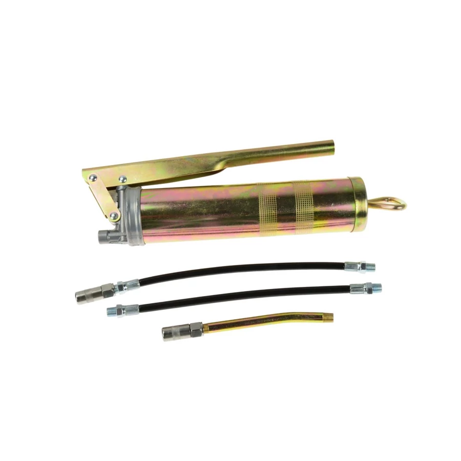 A készlet tartalma:  rugalmas tömlő ,  hajlított kenőcső ,  2x 4 pofás kenőcsúcs