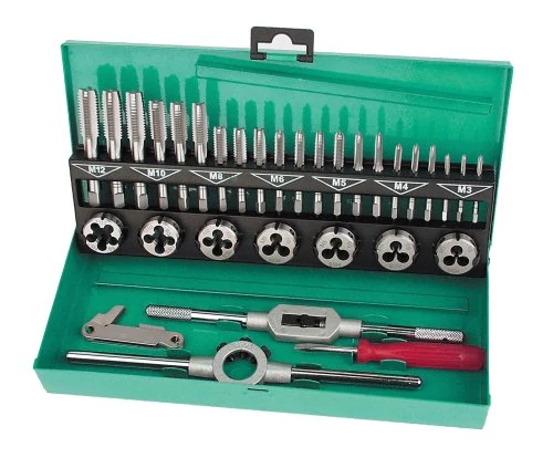 - 21 x kézi menetfúró (3 x M3, 3 x M4, 3 x M5, 3 x M6, 3 x M8, 3 x M10, 3 x M12)