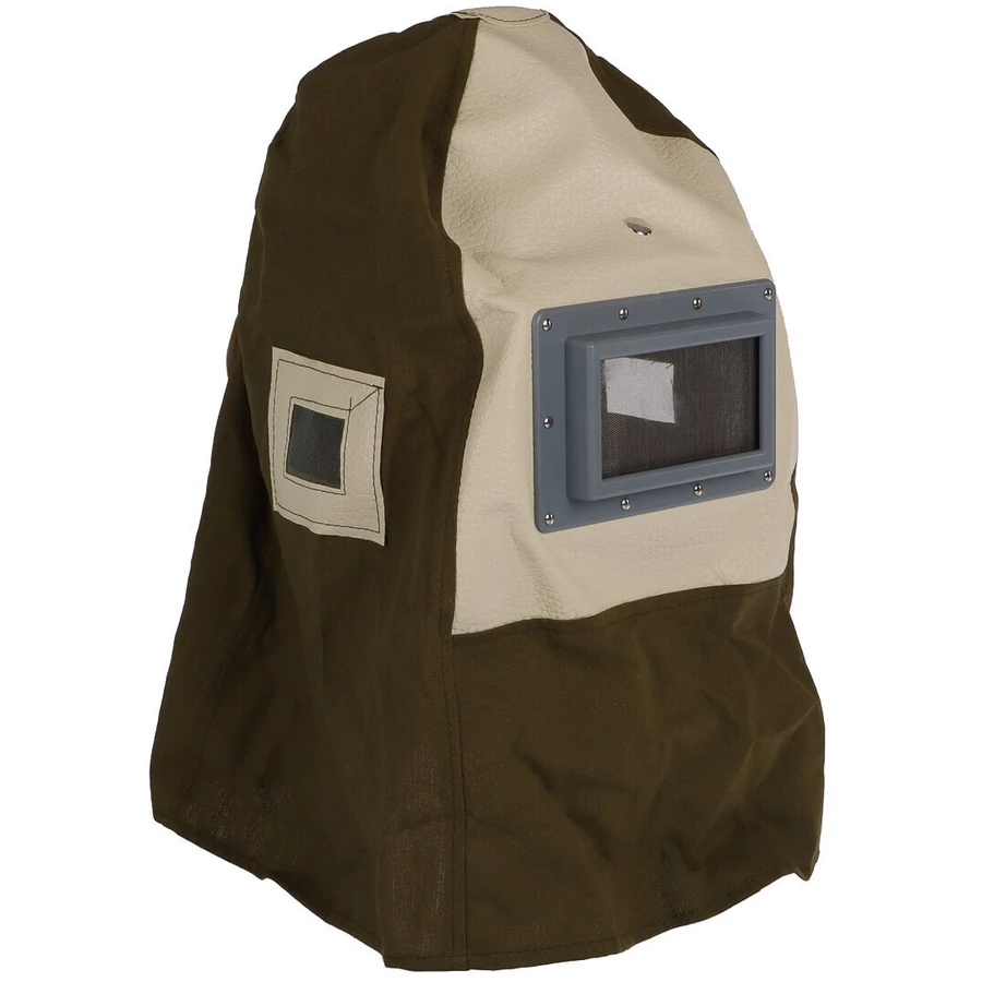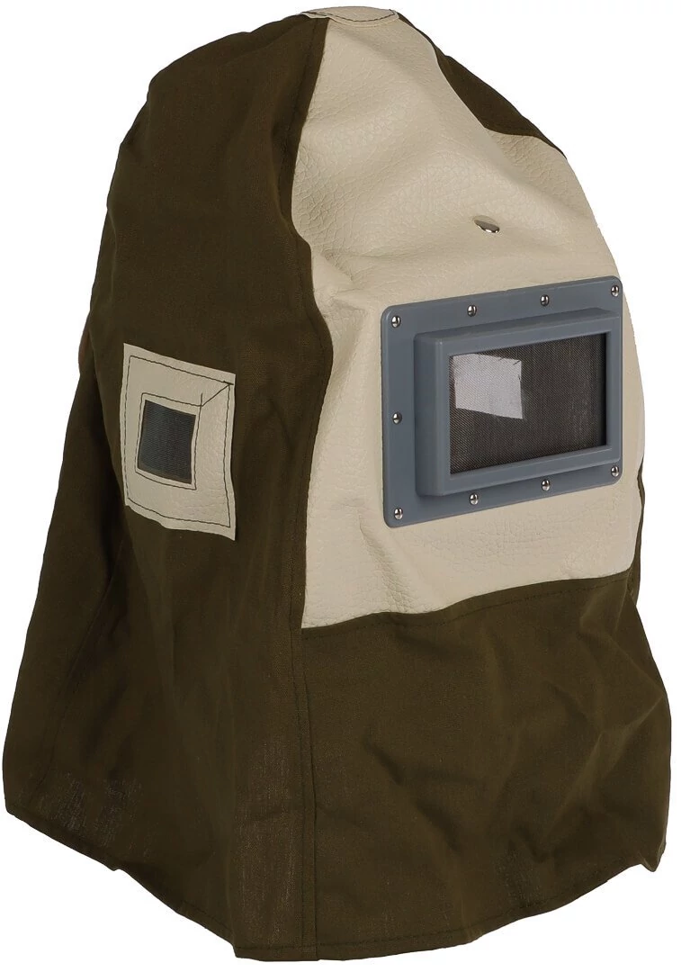 - Homokfúvóhoz alkalmas védőálarc, védősisak műbőr és erős vastag vászon alapanyagból.