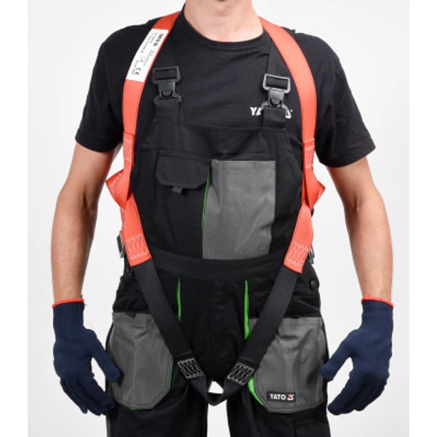Az YT-74221 biztonsági heveder a rendszer egyik eleme, amely megvédi az embereket a magasból való leeséstől. A megfelelően felszerelt hevedernek szorosan illeszkednie kell a törzshöz és a combhoz, hogy a kijelölt rögzítési ponttal együtt egyenletesen el tudja osztani az esés során a testre ható erőket.