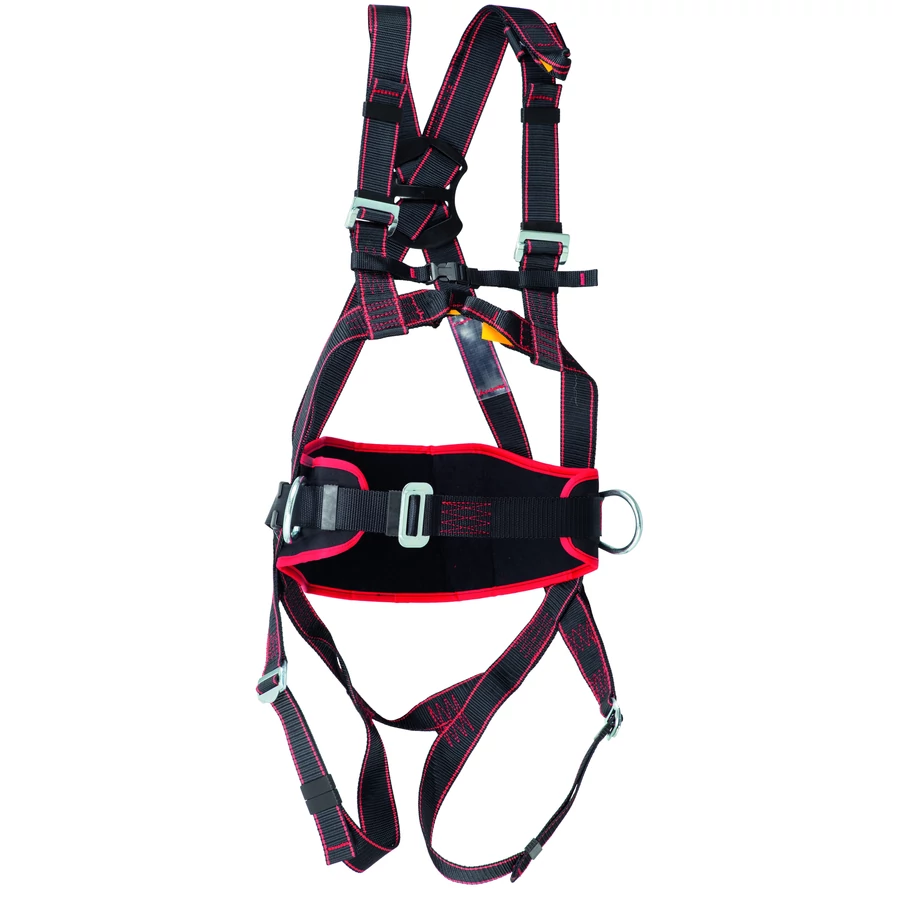M-XL Széles alkalmazási körű, univerzális típusú zuhanásgátló heveder hátsó és elülső felfüggesztő elemmel, oldalsó gyűrűkkel felszerelt helyzetbeállító derékövvel, valamint állítható váll-, illetve combhevederekkel. A hátsó felfüggesztő elemhez vezető heveder meghosszabbított. Megfelel az EN 361 és EN 358 szabványoknak (CE 0082).