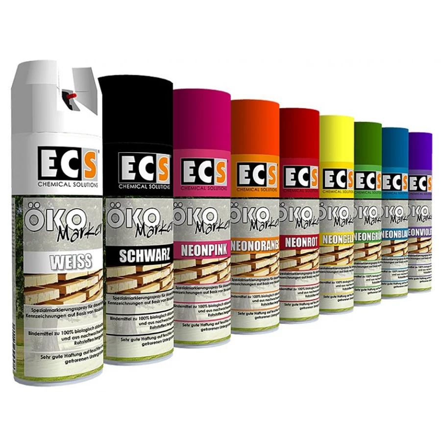 ÖKOJELÖLŐ, illatszegény jelölőfesték - különleges jelölőspray jól látható jelölésekhez - 100%-ban újratermelődő nyersanyagokból előállított kötőanyag - fagyálló, környezetbarát és illatszegény, bioalkohol-bázisú jelölőfesték - ideális fém, beton, aszfalt, fa és kő jelölésekhez - nagyon jó tapadás nedves és fagyott felületeken - alacsony szennyeződésveszély az optimalizált írófúvóka által - KWF által bevizsgált minőség (Erdei Munka és Erdészeti Technika Felügyelet)