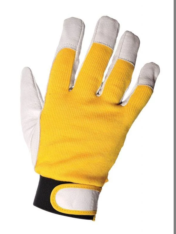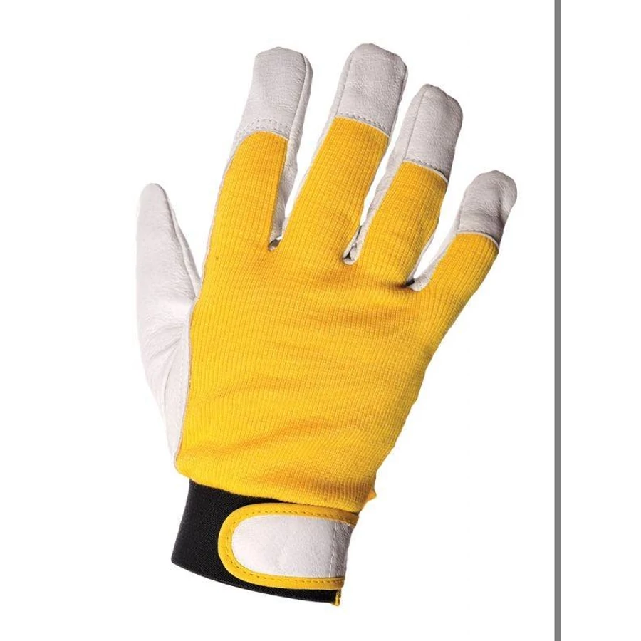 Prémium szín sertésbőr védőkesztyű tépőzáras mandzsettával, pamut kézháttal, egyedi színkódolt méretezéssel.